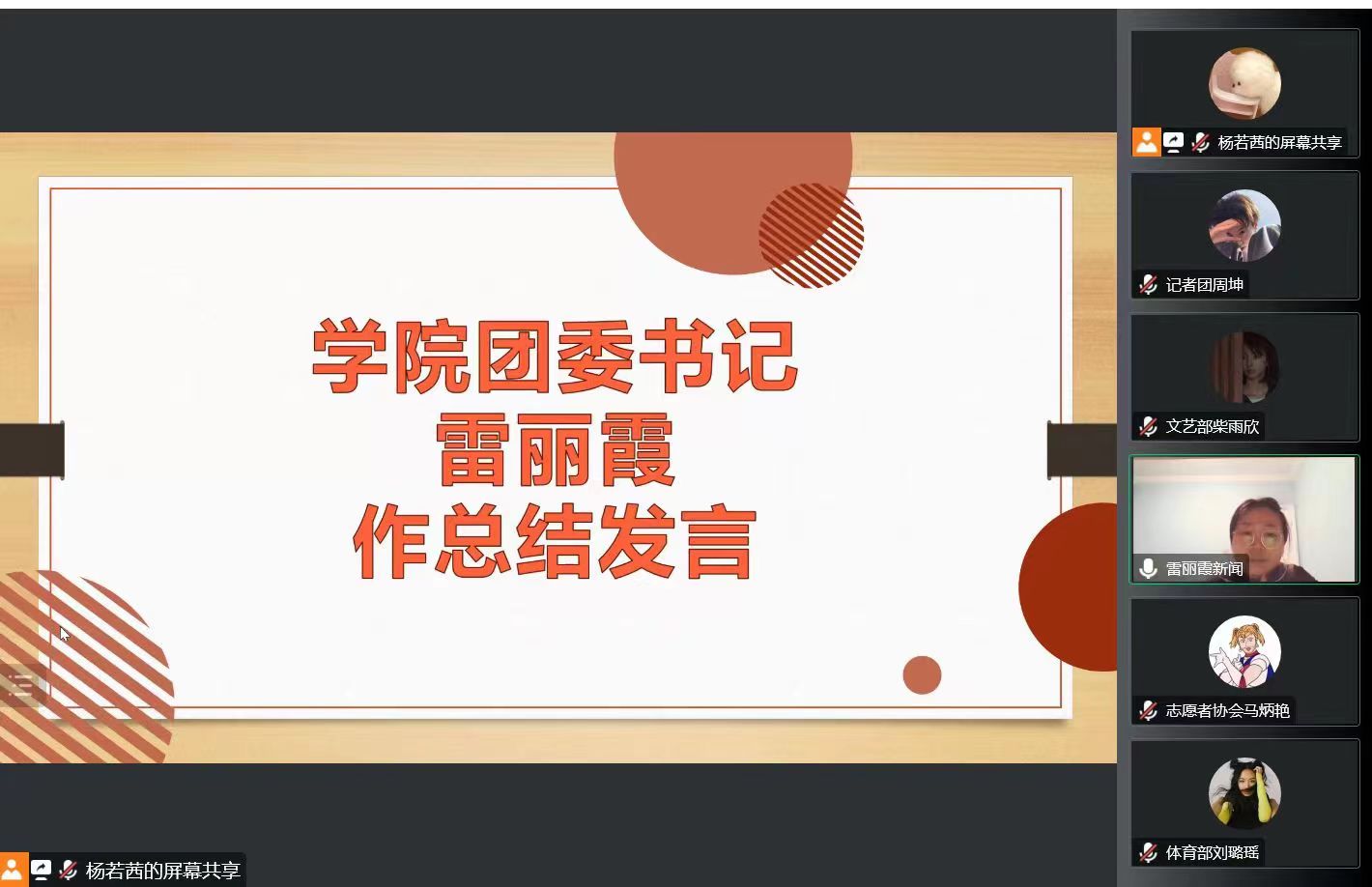 组织的沟通与协作能力;四是要积极主动地研究工作,以更高的要求对待工作。最后,雷丽霞对下学期工作规划提出了要求。