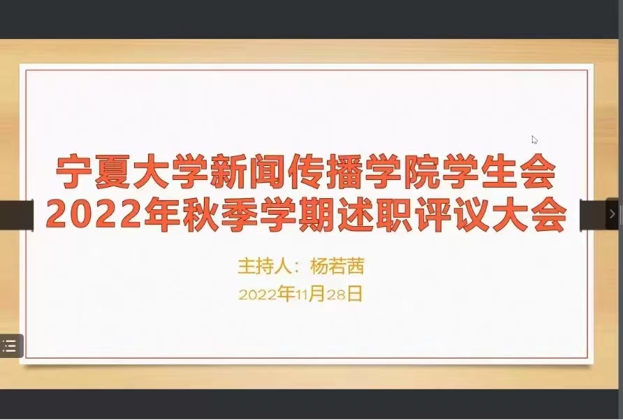 为进一步加强学生干部队伍建设,推动学生会工作科学化、规范化、精细化发展,我院学生会于11月28日在线上组织开展学生会2022年秋季学期述职评议大会。银河国际