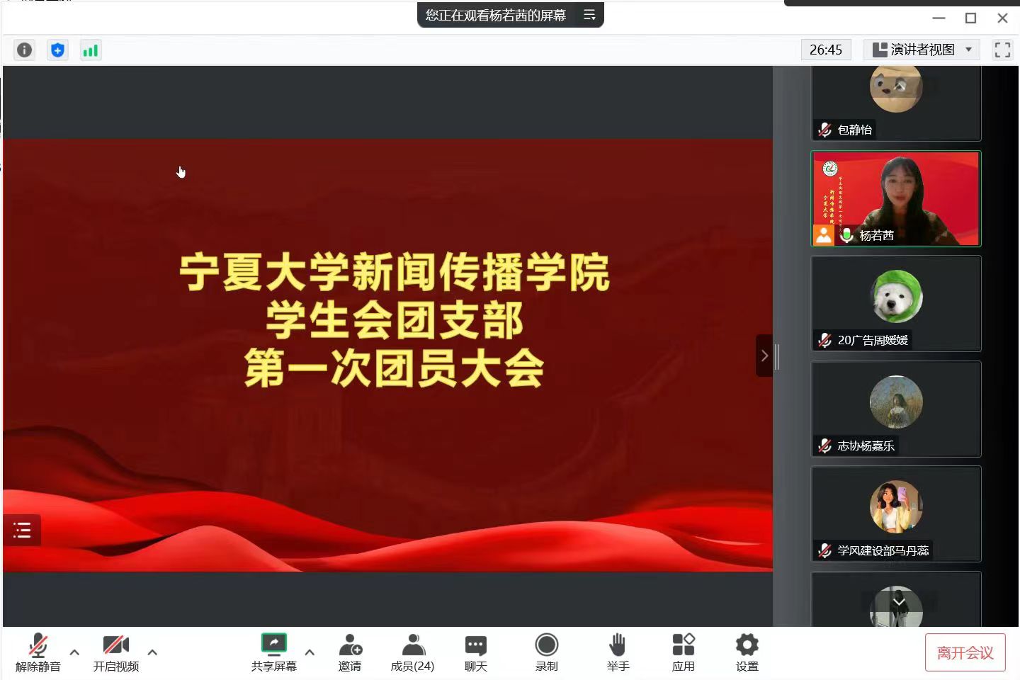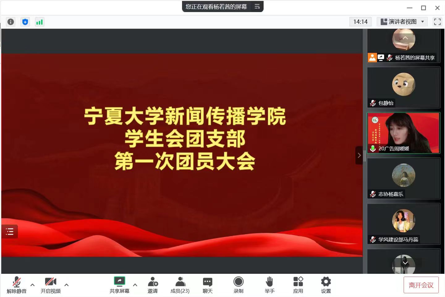学生会主席团成员杨若茜主持,来自我院各年级的22位学生代表参加本次会议。