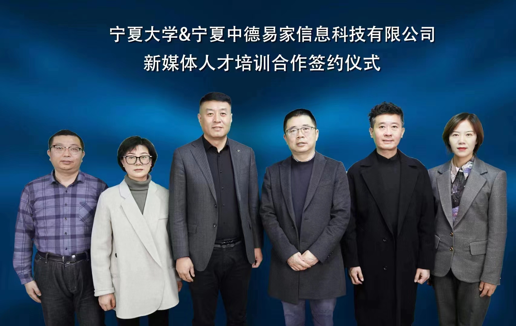 党总支书记潘瑞、执行院长李世举、副院长张静涛、广告系主任朱俊松,宁夏中德易家信息科技有限公司总经理董彦雨、副总经理吕文娟、视频部主任徐德宝参加了签约仪式。