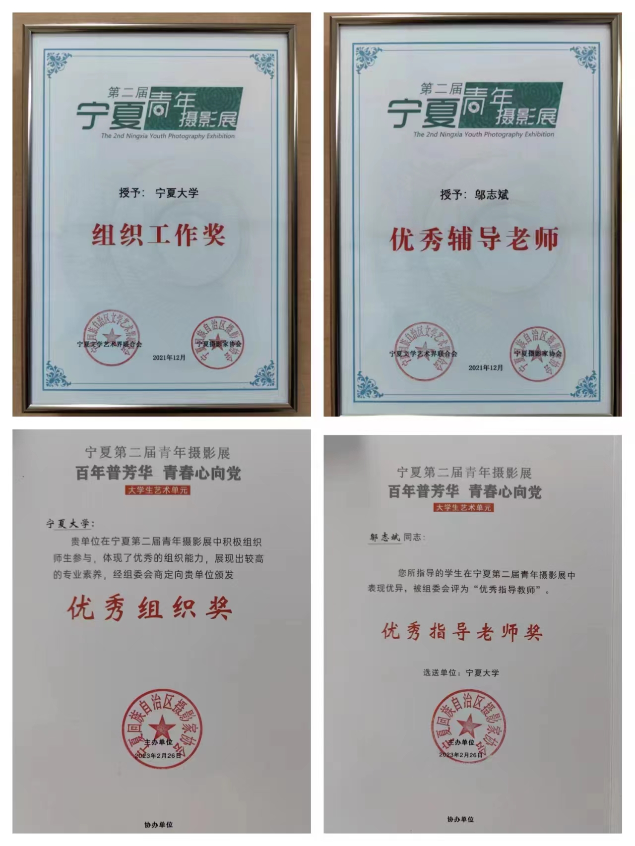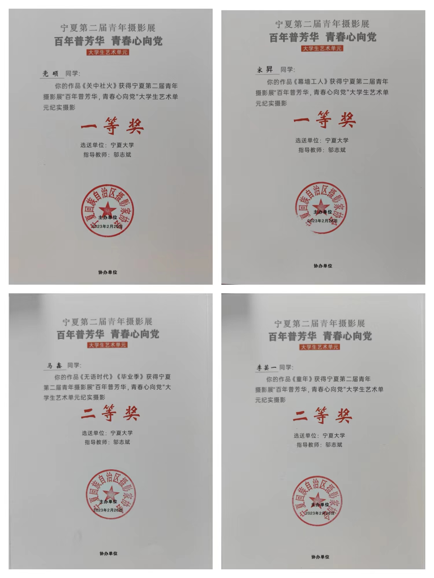 本次摄影展我院师生17人27组照片入展,9位师生分获一、二、三等奖,其中,一等奖两名,二等奖五名,三等奖两名;三位同学获潜力摄影人奖;邬志斌老师获优秀指导教师奖,自治区文联、区摄影协会授予银河国际