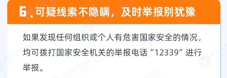 2015年11月,全国国家安全机关向社会发出通告,“12339”是国家安全机关受理公民和组织举报电话。这条热线是由国家安全部设立的,以方便公民和组织向国家安全机关举报间谍行为或线索。