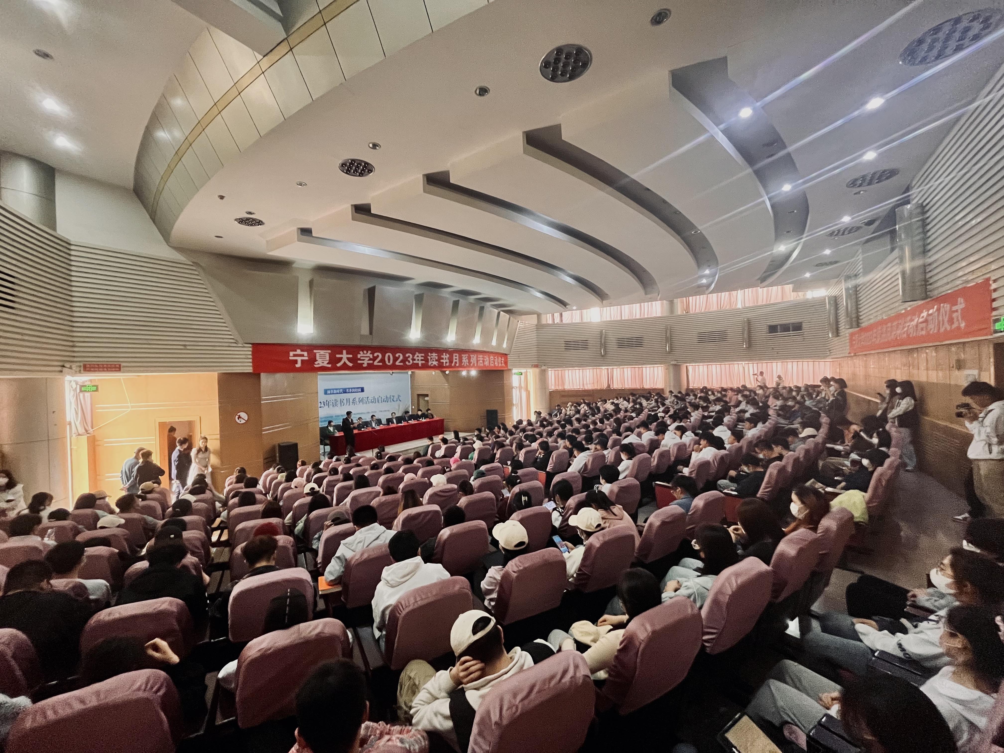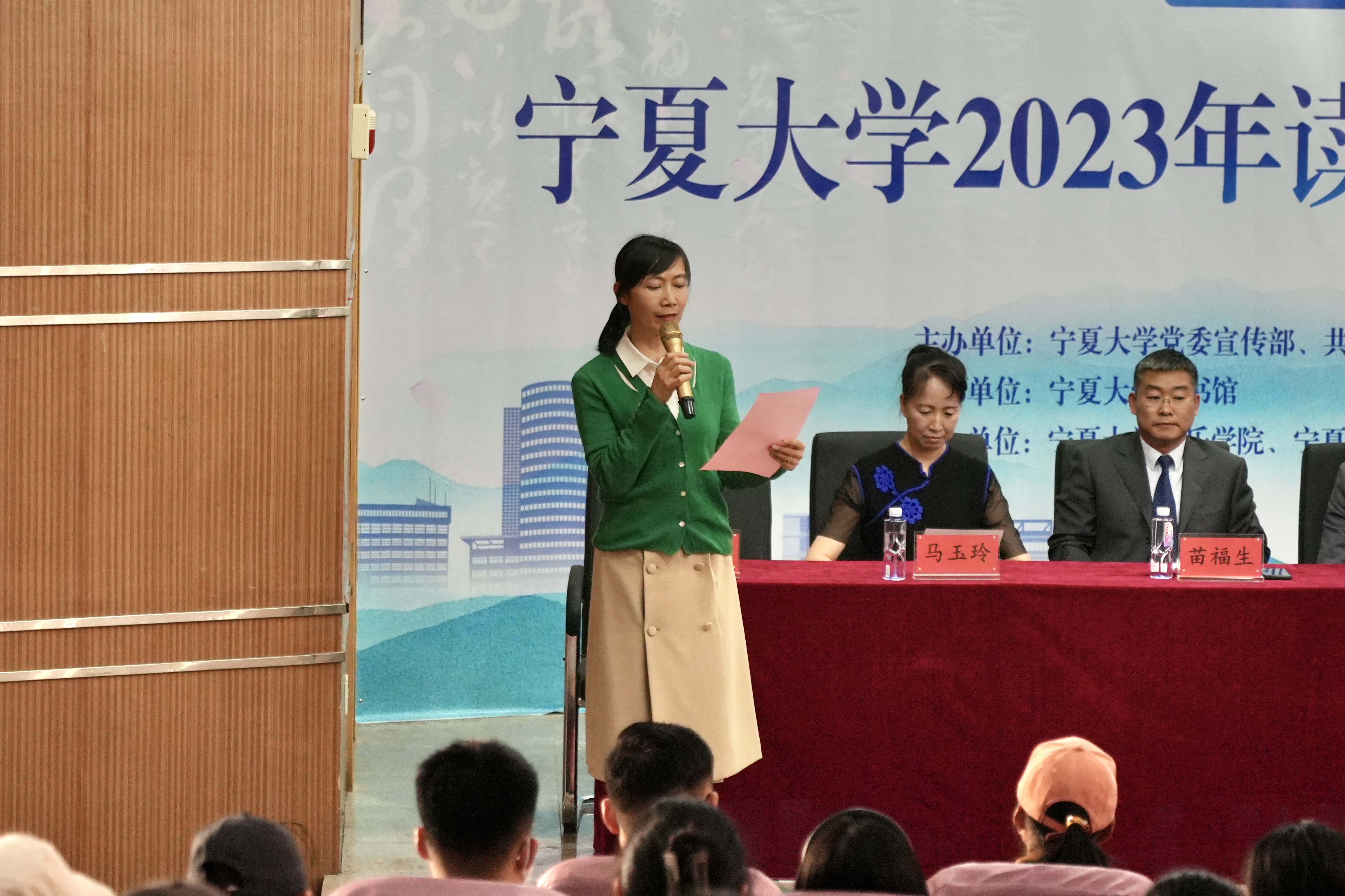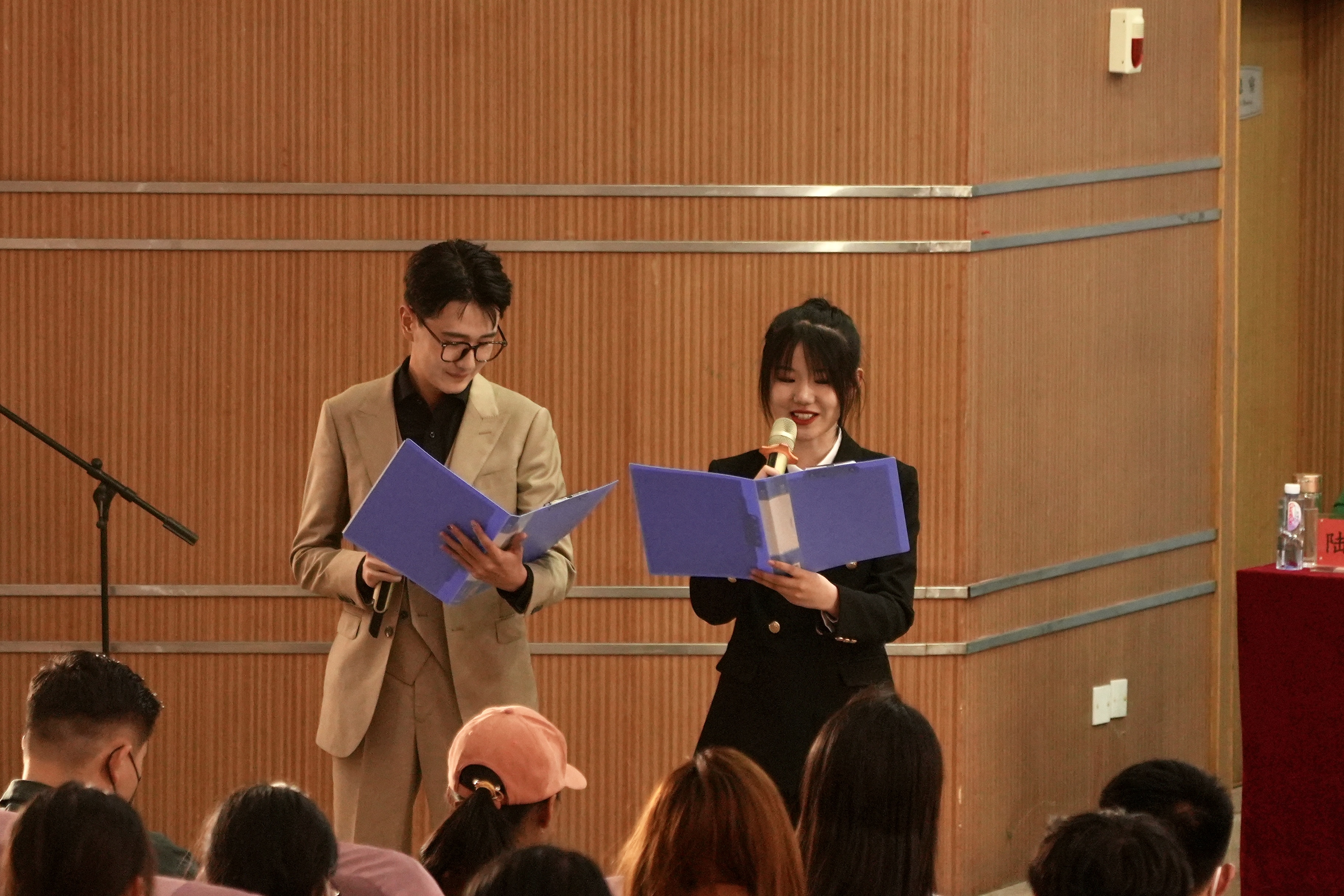 逸夫图书馆报告厅举行了2023年读书月系列活动启动仪式,启动仪式由我院2022级播音与主持艺术专业学生周佳韵和郑俊杰主持。