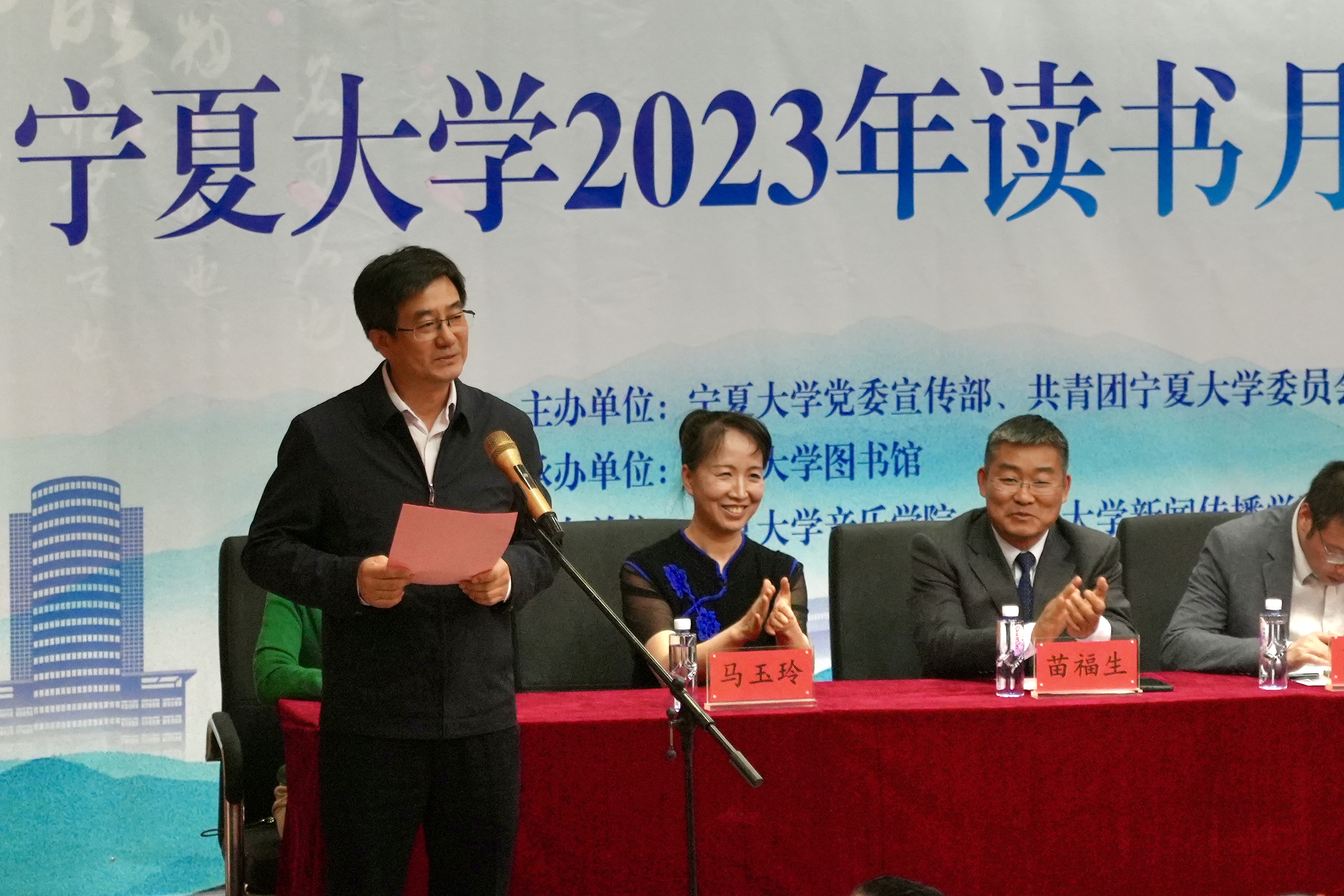 图书馆馆长苗福生宣读系列活动安排,银河国际