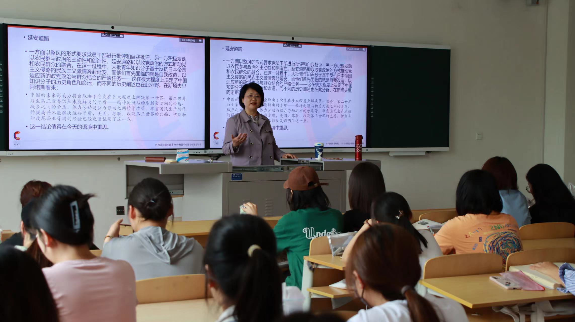 接下来,吕新雨教授引用斯塔夫里阿诺斯和萨米尔·阿明的观点,向同学们展示了国际传播体系的面貌,并进一步阐释了中国道路和中国智慧、马克思主义新闻观在中国的的发展,全面具体地让大家了解到了“山沟沟里的马新观”的影响力、感染力。