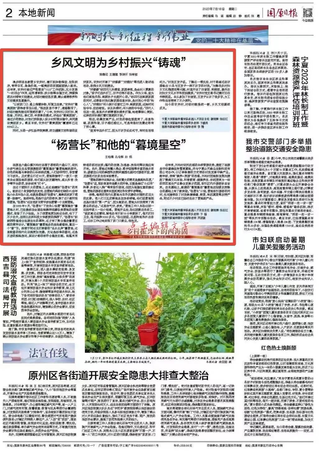 7月18日《固原日报》“乡村振兴下的西海固——银河国际