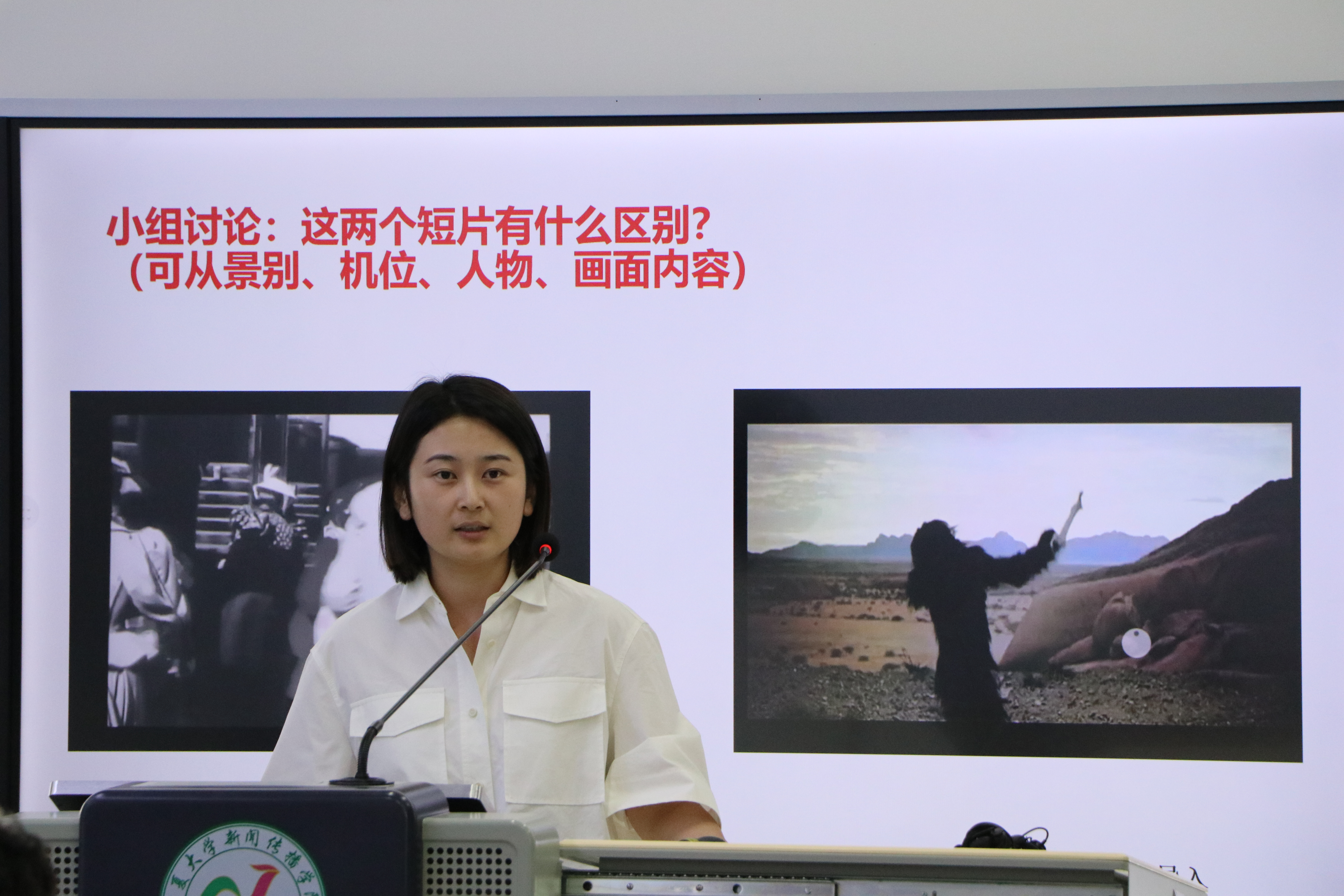 杨璠老师通过对比《火车进站》与《2001太空漫游》两个影片片段,让同学们感受到多个镜头的连接转换在电影叙事上的作用,展现了蒙太奇叙事的流畅自然,继而引入了蒙太奇的概念和它的产生与发展。