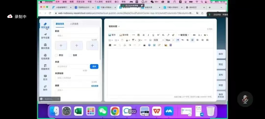 在培训活动中,专业老师对许愿星空云泛媒体平台的使用方法进行了详细的讲解。内容涵盖了后台的结构介绍、稿件发布演示、系统管理、会员中心和统计等方面。老师还通过演示不同类型的稿件,如文章稿件、组图稿件、视频稿件、音频稿件和链接稿件等,向学生们展示了该平台的具体操作过程。这样的演示使学生们对如何在该平台上发布新闻稿件有了更深入的认识和理解。