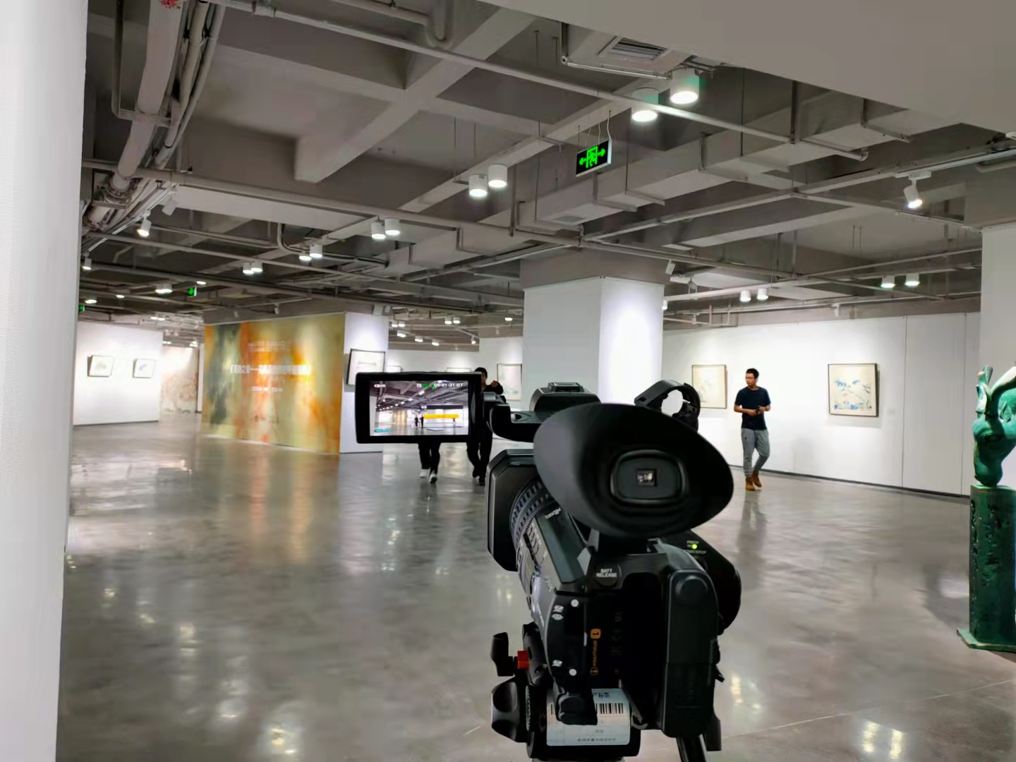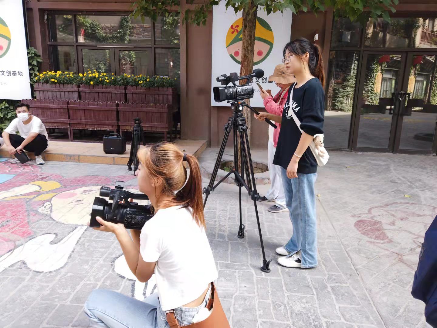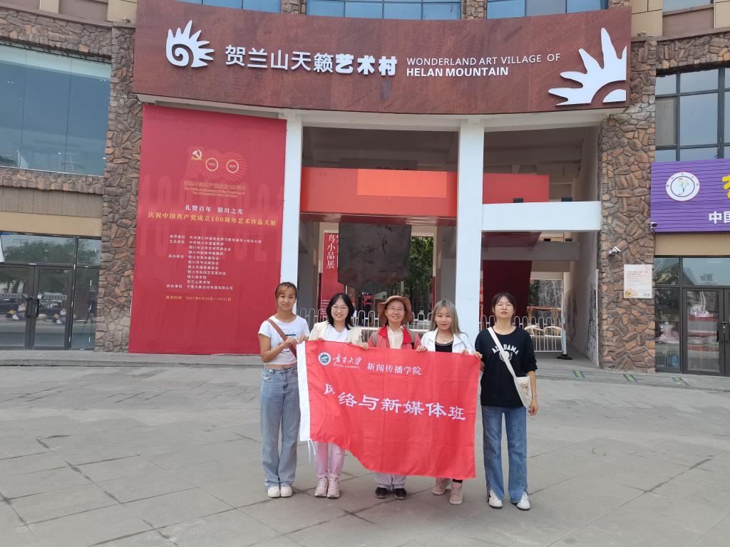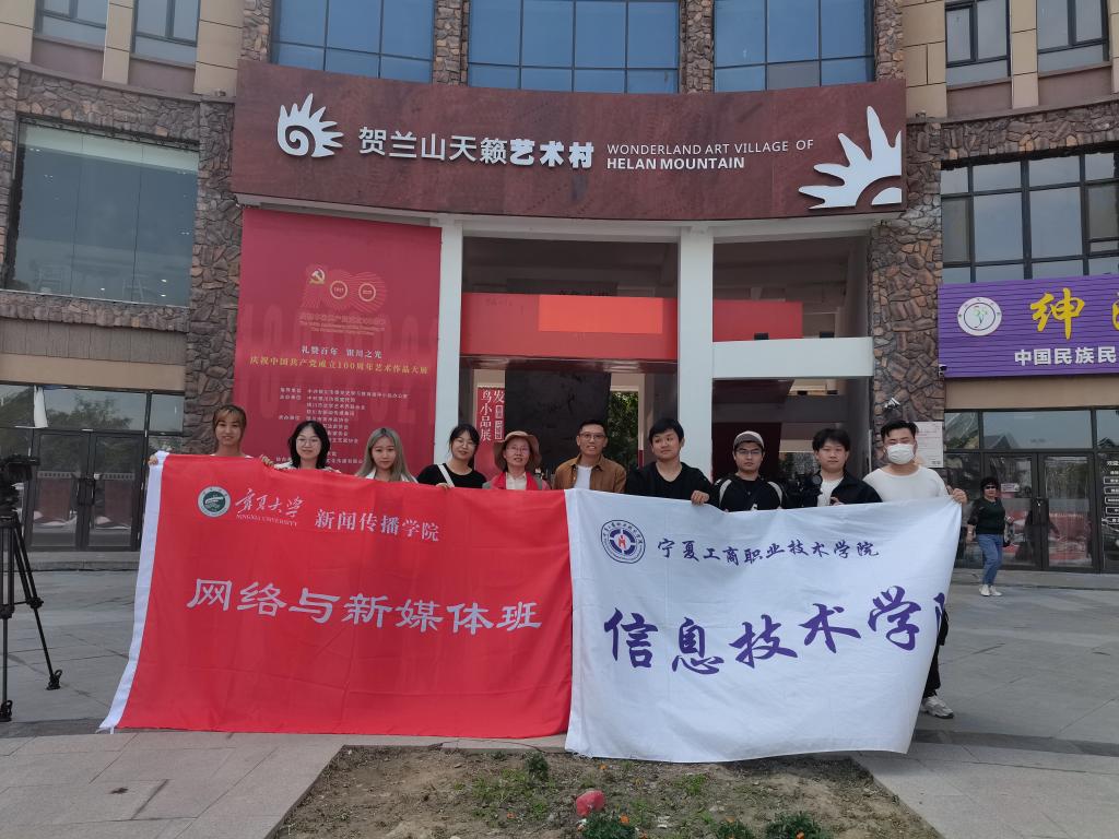 的同学们交流拍摄心得。与此同时,腾讯短视频运营中心的老师耐心教小分队成员怎样保持相机在拍摄过程中的稳定以及运用不同的景别进行拍摄的方法。同学们在贺兰山天籁艺术馆进行实操训练,感受浓浓的艺术气息。