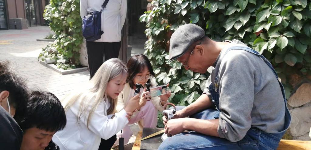 小分队从漫葡小镇南门出发,进入漫葡•天沐养颜温泉,在文创艺术街区观看老手艺人的工作,与工商银河国际