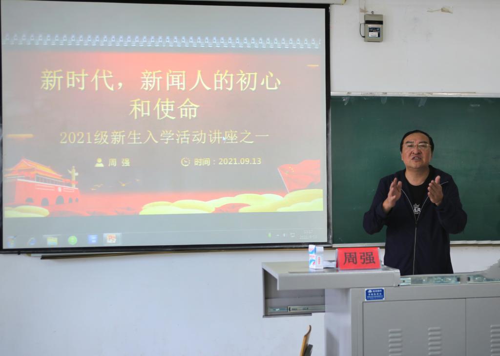 为加深新生们对专业知识的系统认识,培养有温度、有情怀、高品质的新闻工作者,9月13日上午,我院于文荟楼130教室开展“新时代,新闻人的初心与使命”主题讲座。本次讲座由党总支书记周强主讲。