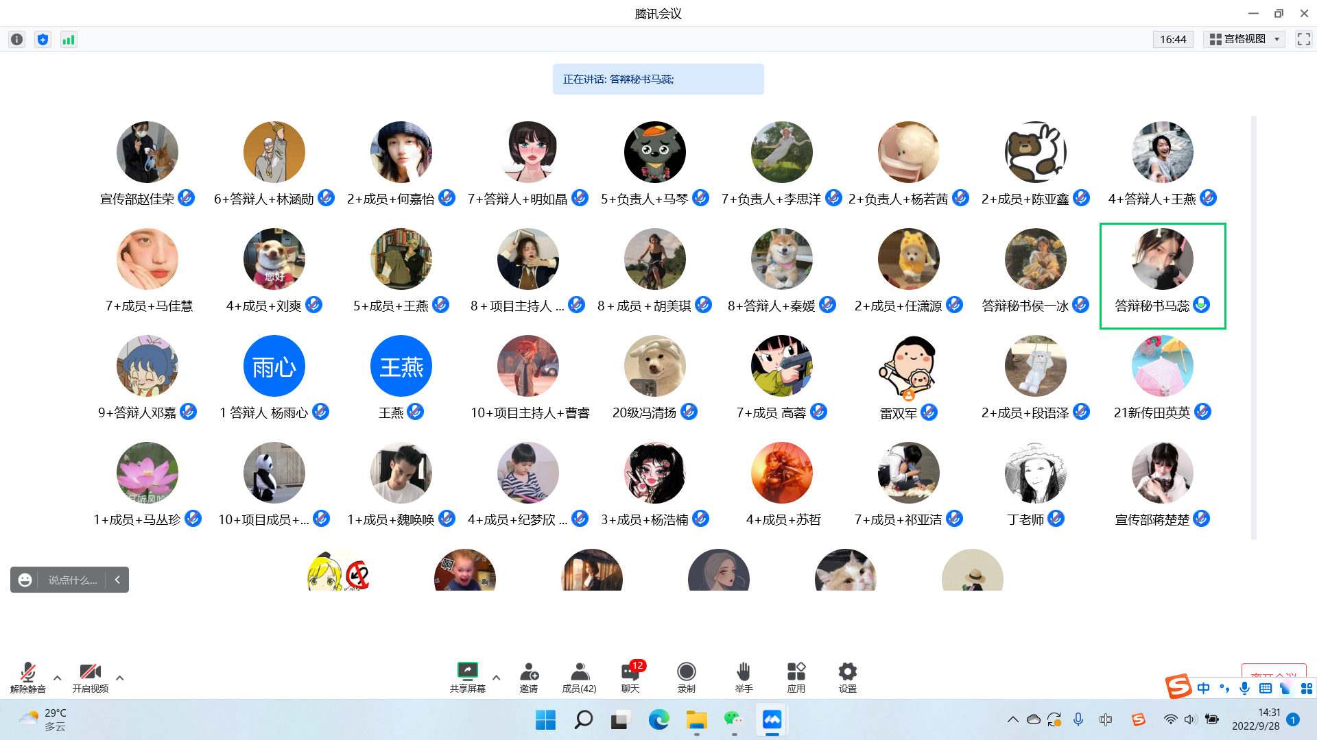 为培养学生创新创业能力,总结创新创业项目阶段性成果,9月28日,我院在线上开展了“2022年大学生创新创业训练项目中期答辩”活动,教学科研办公室负责人雷双军老师、丁洁华老师、赵雅洁老师担任答辩评委。