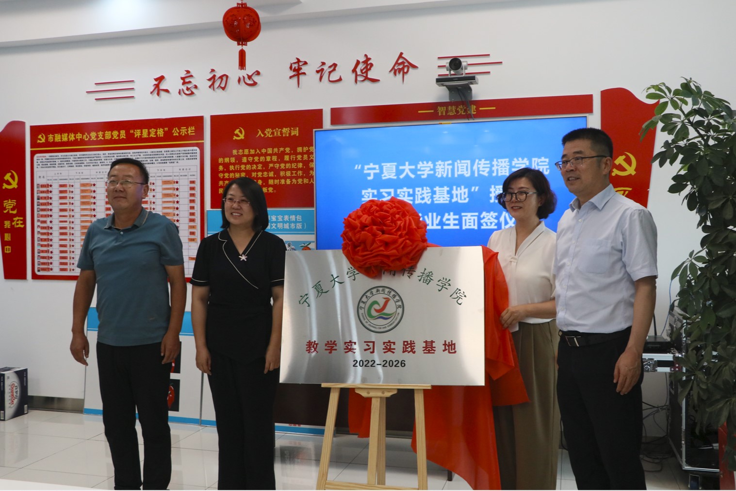 与灵武市融媒体中心共建实习实践基地揭牌仪式,在灵武市融媒体中心举行。银河国际