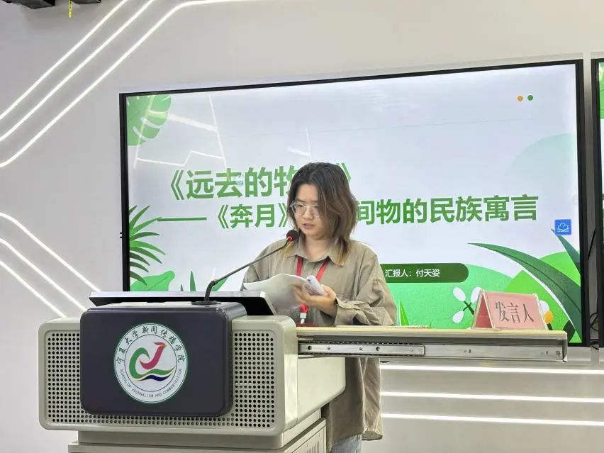 伊犁师范大学付天姿以《<远去的牧歌>——<奔月>式中间物的民族寓言》为题进行分享,将电影《远去的牧歌》中的主要人物同《奔月》中的人物一一对应,从民间寓言视角对影视作品人物进行深入解读。
