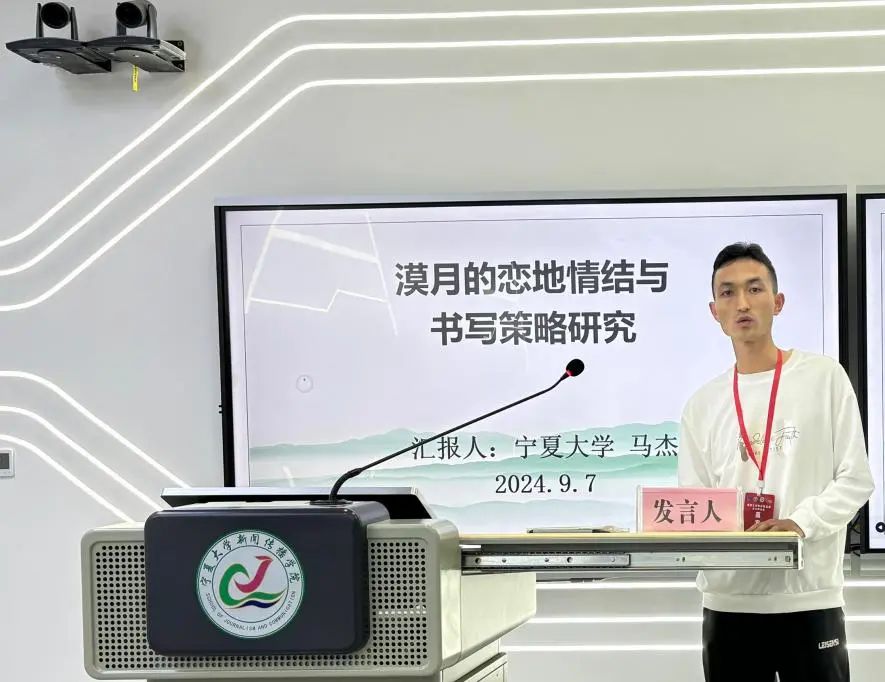 银河国际 文银河国际 马杰以西北地区知名作家漠月作为研究对象,以《漠月的恋地情结与书写策略研究》为题进行了分享,从漠月小说创作中的“故乡之恋”及其“恋地情结”的书写策略两个维度论述了漠月“恋地情结”的文学创作价值。